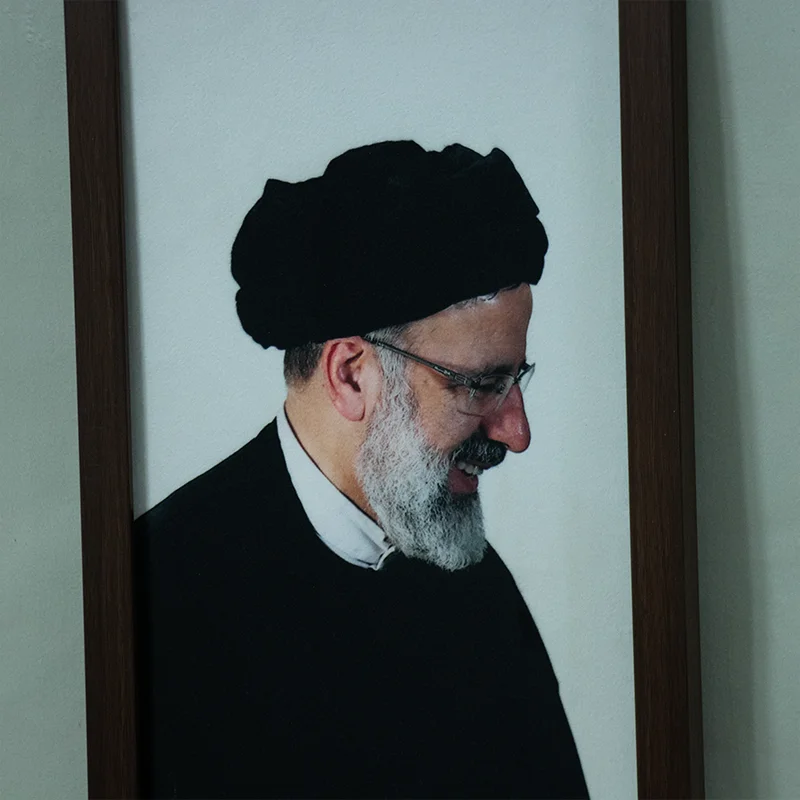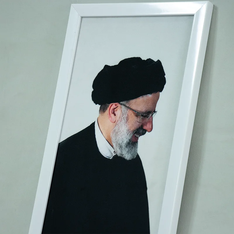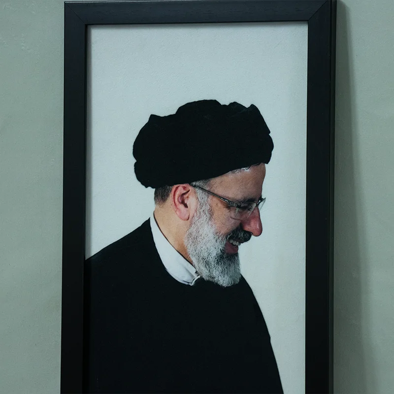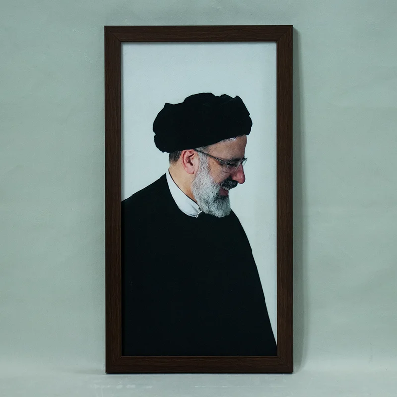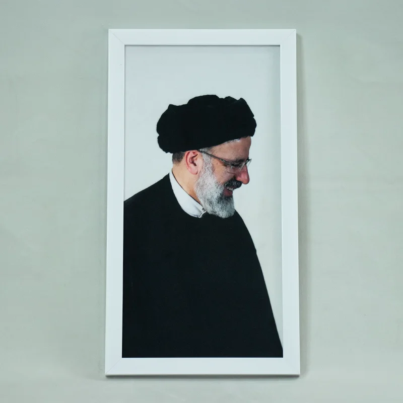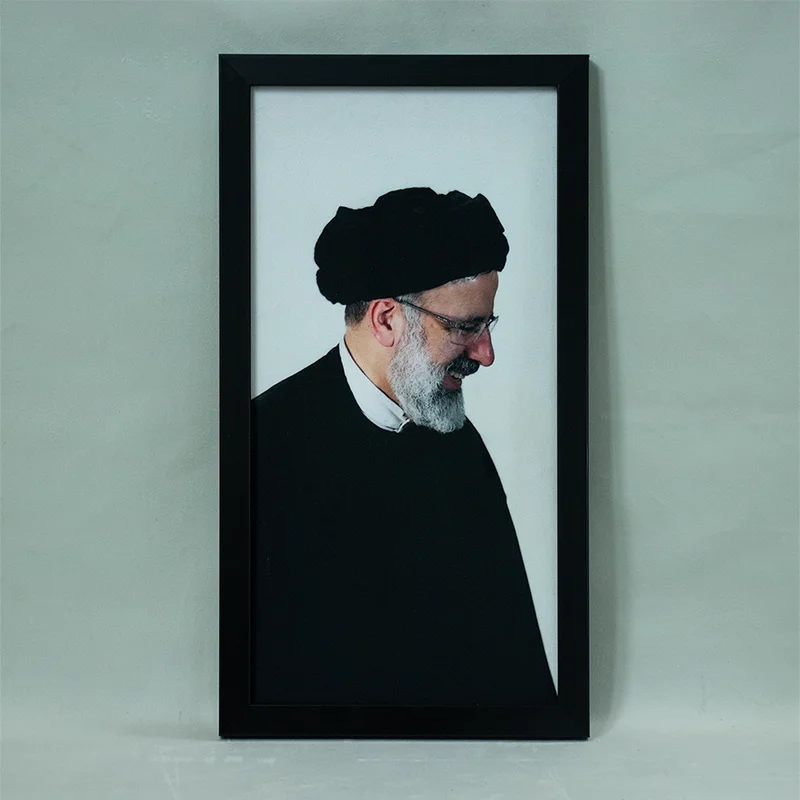 در این اثر، چهرهی شهید آیتالله سید ابراهیم رئیسی با نگاهی متین و آرام به تصویر کشیده شده؛